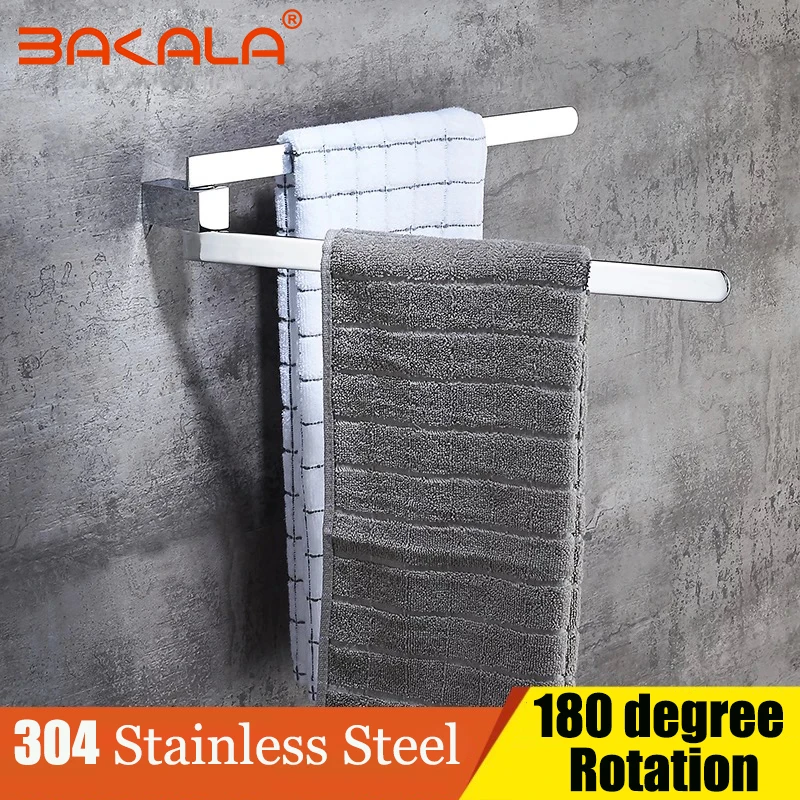 - Barra de toalla giratoria de acero inoxidable 304, Toalleros dobles móviles, accesorios de baño de rotación cromada