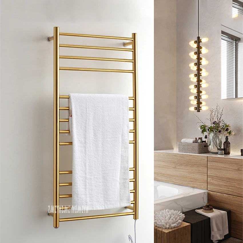 - Toallero de acero inoxidable 304, calentador de oro de titanio, toallero con calefacción eléctrica montado en la pared, estante de secado de toallas